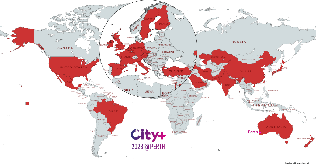 City+2023@Perth: 300+ attendees from 29 Countries and Regions in Asia, Europe, North America, South America, and Oceania